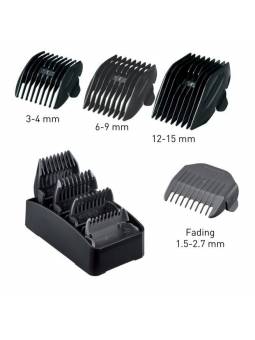 CARACTERÍSTICAS TÉCNICAS -Motor lineal de control constante: 58.000 cabellos por segundo y 10.000 movimientos por minuto -Dial de ajuste de longitud de corte de 5 posiciones: de 0,3 mm a 1,5 mm, en pasos de 0,3 mm -Peine-guía FADING para degradados de 1,5 mm -3 peines-guía dobles de 3/4 mm, 6/9 mm y 12/15 mm -Indicador del estado de carga y de recarga de la batería -Funcionamiento con o sin cable (cord/ cordless) -Batería de iones de litio; tensión universal automática -Recarga completa de la batería en 1 hora; hasta 50 minutos de autonomía sin cable -Ergonómica: pesa tan sólo 245 g -Made in Japan