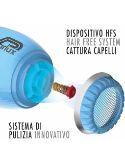 Con un innovador sistema atrapelo HFS "HAIR FREE SYSTEM" que facilita la limpieza del secador y evita posibles averias alargando su vida útil.