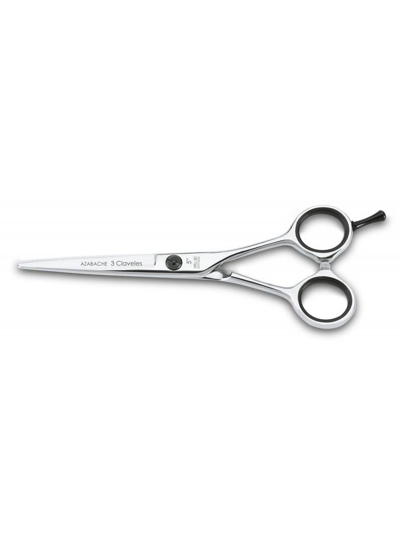 Azabache es una tijera de peluquería de corte 3 Claveles con filo de navaja, para técnicas de corte de cabello avanzadas.