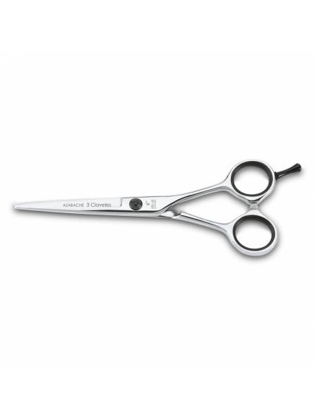 Azabache es una tijera de peluquería de corte 3 Claveles con filo de navaja, para técnicas de corte de cabello avanzadas.