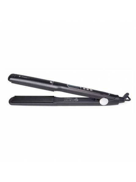 Ideal para crear peinados con efecto frisé. Sus placas de diseño zig-zag con revestimiento cerámico aseguran una distribución uniforme del calor, creando pequeñas ondas bien marcadas que aportan volumen y textura al cabello para lograr un look audaz y perfecto. Equipada con control de temperatura ajustable, esta plancha se adapta perfectamente a cualquier tipo de cabello.
