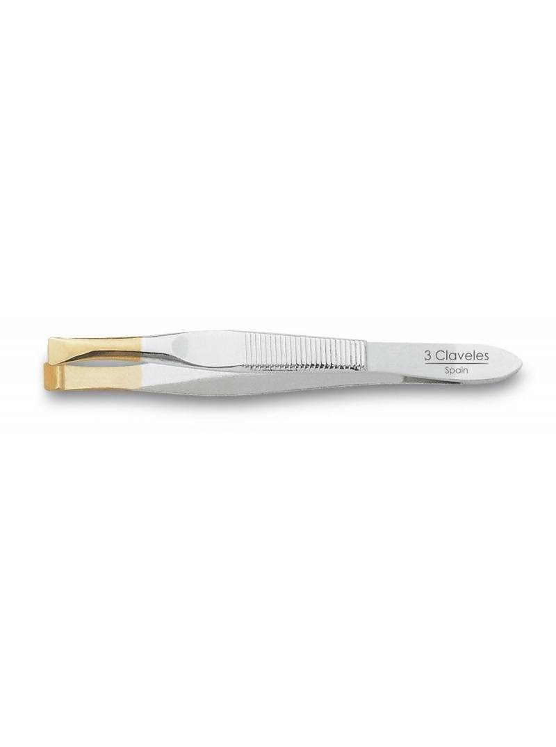 3 CLAVELES PINZA DEPILAR ANCHA RECTA PUNTA ORO 80MM