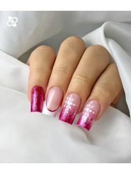 Paso 2: Aplicar una capa fina y estirada de 2Way Base & Top Coat y curar en lámpara LED/UV, 60/120 segundos respectivamente. No es necesario limpiar la goma.En el caso de que elija la Elastic Base , siga los siguientes pasos: Aplicar una capa fina y estirada de Elastic Base . Cura en lámpara LED/UV, 60/120 segundos respectivamente. Aplique una segunda capa generosa y dé forma a la Elastic Base con su propio pincel o con un pincel fino si lo desea. Puede hacer extensiones de 2-3 mm con el molde. Cura en lámpara LED/UV, 60/120 segundos respectivamente. Elimine la goma con el Cleaner ou a Solução Higienizante. Dar forma a la uña con una lima y eliminar el polvo con un cepillo de plástico.