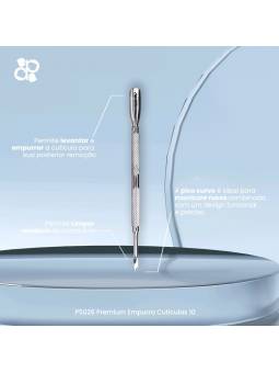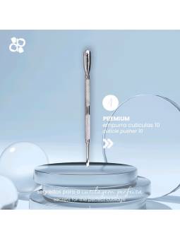 Empuja las cutículas en forma redondeada ancha, que se adapta a la forma de la uña, permitiendo levantar y empujar la cutícula para su posterior remoción. La cuchilla recta en ángulo elimina eficazmente las cutículas gracias a las cuchillas afiladas. Adecuado para manicura rusa y combinada, con un diseño funcional, preciso y robusto. El empujador de cutículas está destinado a un uso profesional. Puede someterse a todo tipo de desinfección.
