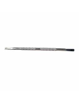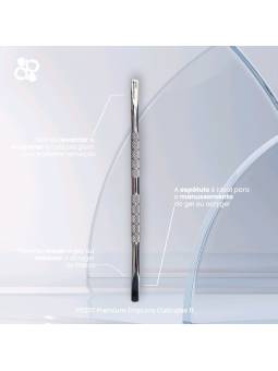 Empuja las cutículas en forma redondeada ancha, que se adapta a la forma de la uña, permitiendo levantar y empujar la cutícula para su posterior remoción. La cuchilla recta en ángulo elimina eficazmente las cutículas gracias a las cuchillas afiladas. Adecuado para manicura rusa y combinada, con un diseño funcional, preciso y robusto. El empujador de cutículas está destinado a un uso profesional. Puede someterse a todo tipo de desinfección.