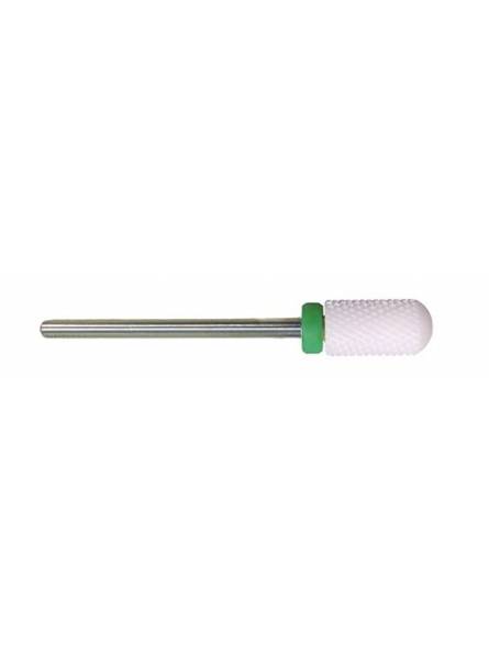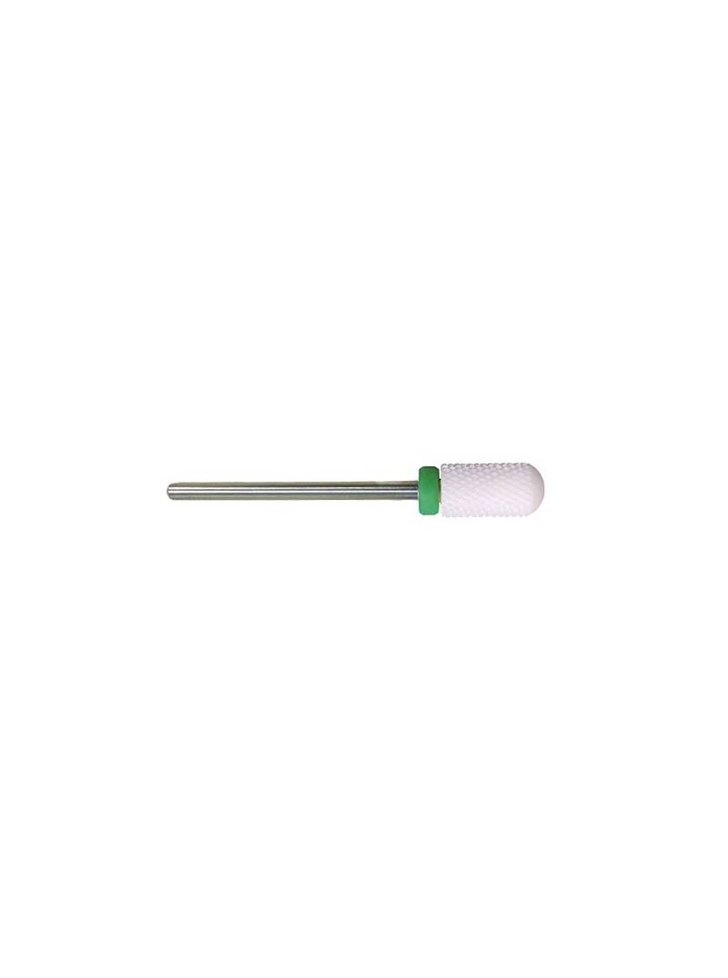 Las fresas de cerámica son ideales para remover y dar forma al gel y acrílico, así como para reducir el espesor y eliminar los restos en la punta de la uña (debajo).