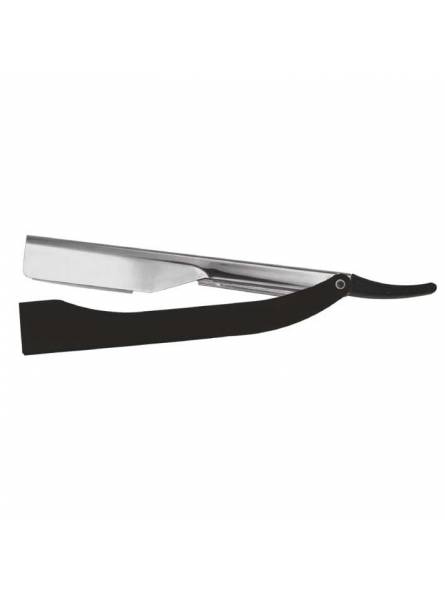 Navaja muy ligera para afeitado y retoques de barba y cabello con mango metálico negro