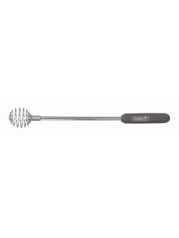 Batidora de tinte de acero inoxidable. Mezcla rápidamente incluso el color o el decolorante más espeso. Se desliza fácilmente a través del color ahorrándole tiempo. El diseño de metal no se mancha. Fácil de limpiar. Con cómodo mango de silicona.