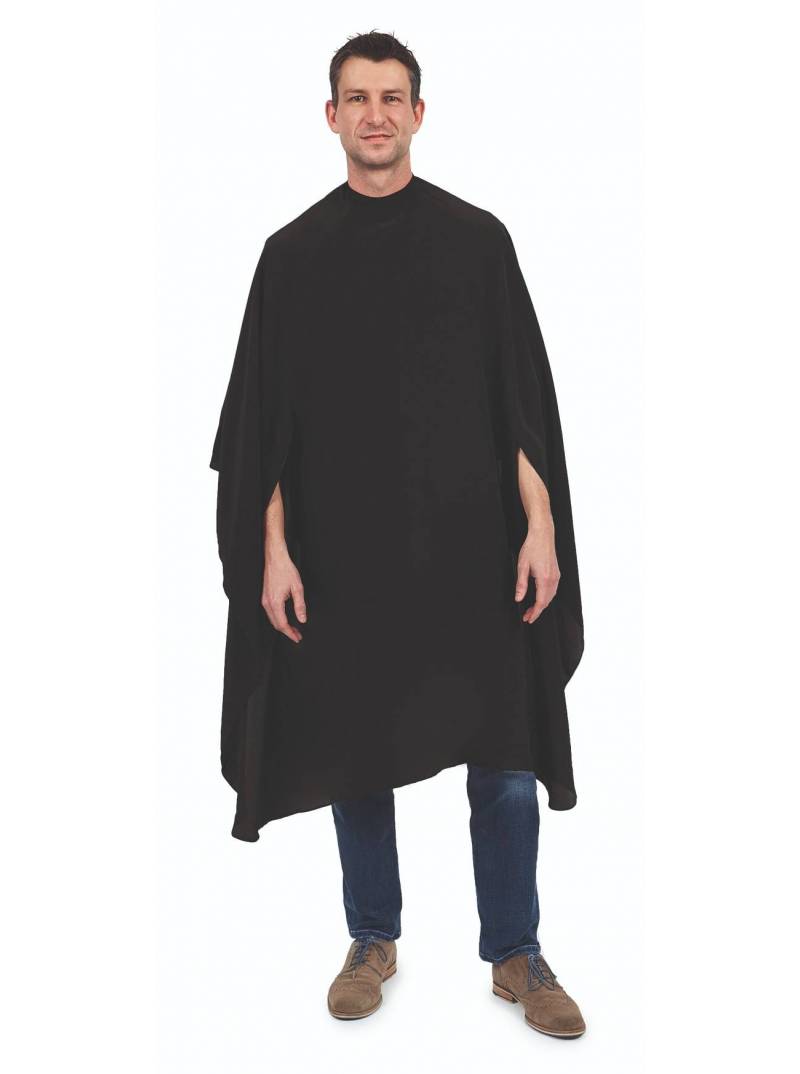 Capa de corte XL para caballero hecha de material de poliéster, sin arrugas. Con aberturas que permiten a los clientes moverse libremente y usar el teléfono móvil.