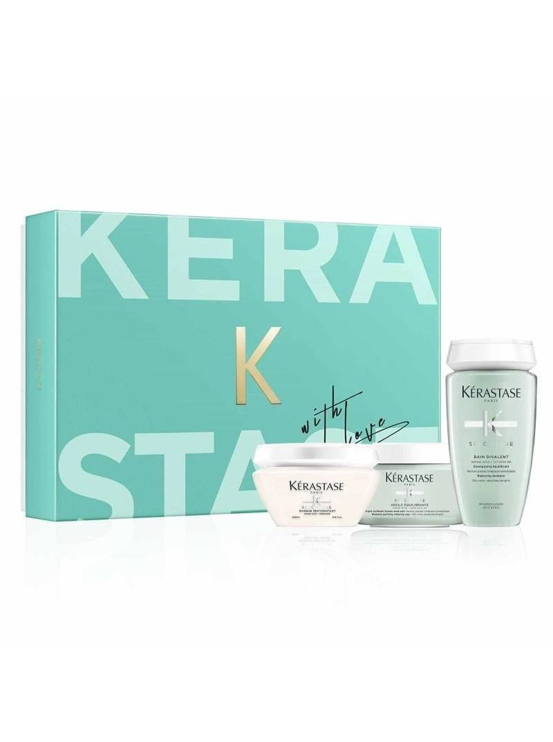 Cofre de edición limitada con champú Bain Divalent, arcilla árgile équilibrante y mascarilla masque rehydratant, para cuidar las raíces grasas y los largos sensibilizados.