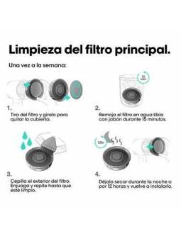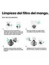 AirLight Pro viene equipado con: 2 acesorios (Boquilla & Difusor) Cuerda 3,5 metros 1 filtro limpiable extraíble (ya montado) Un cable de alimentación de longitud profesional de 3,5 metros (11,5 pies) Una pantalla LCD integrada Un manual de instrucciones.