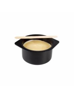 5.- Una vez calentada la cera, dejar reposar 1 minuto en el microondas. ntroducir la espátula con cuidado y remover la cera para homogeneizar su textura. No fuerce la introducción de la espátula en la cera