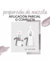 Proporción de mezcla: Para un servicio Silver Glow con aplicación parcial o en toda la cabeza: Mezclar en la proporción de 1:1, por ejemplo, 30 g de Matizante TRUE GREY + 30 g de Activador TRUE GREY. Para diluir el matizante sigue las instrucciones de mezcla para el tratamiento, mezclando en una proporción de 1:1:1 a 1:1:2, por ejemplo, 20g de Matizante TRUE GREY + 20g de Activador TRUE GREY + 20g de Clear Conditioning Perfector TRUE GREY. Para tratamientos con aplicación parcial o en toda la cabeza, aplicar sobre el cabello seco. Consistencia cremosa, ideal para técnicas a mano alzada. Para el servicio Express Silver Glow: Mezclar en una proporción de 1:1:1, p. ej., 20g de Matizante en crema TRUE GREY + 20g de Activador TRUE GREY + 20g de Clear Conditioning Perfector TRUE GREY. Aplicar sobre el cabello previamente lavado con champú. Dejar actuar hasta 15 minutos, aclarar y peinar. No es necesario aplicar tratamiento posterior. Después del tratamiento: Una vez completado el tiempo de actuación, añadir un poco de agua templada y emulsionar suavemente el producto. Aclarar con abundante agua. Aplicar de 1 a 2 dosis de Nº 2, distribuir por el cabello con la ayuda de un peine y dejar actuar durante 3 minutos. Aclarar y peinar.