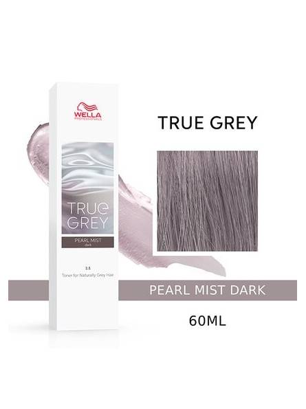 El matizante True Grey Pearl Mist Dark de Wella es un tratamiento revitalizante en el salón, para crear un efecto plateado en canas naturales. Revitaliza el cabello canoso a la vez que respeta la estructura original de sus cutículas y ayuda a controlar la dimensión y los juegos claroscuros del cabello. Apto para todo tipo y diferentes porcentajes de canas, del 50% al 100%. La base oxidante suave y sutil de los pigmentos True Grey imitan la vitalidad y los hermosos matices naturales de las canas, mientras se desvanecen de forma natural. Neutraliza los tonos amarillentos y mejora la textura del cabello con True Grey. La cana es bella. ¡Libérala!