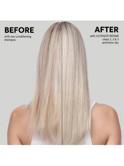 -Cabello 12 veces más suave en solo 90 segundos* -99 % menos de rotura* -Brillo legendario que dura hasta cuatro lavados** -Fuerte poder desenredante*** *prueba instrumental en comparación con champú sin acondicionador ** al usar los pasos 1, 2 y 3 de Ultimate Repair *** sobre el cabello mojado -Tecnología patentada* con AHA y omega 9 para reconstruir y fortalecer el cabello por dentro y por fuera -Dermatológicamente testado -Fórmula vegana/sin ingredientes de origen animal -Protege el color -Compromiso de no realizar pruebas con animales* *Wella es miembro de la International Collaboration on Cosmetics Safety