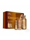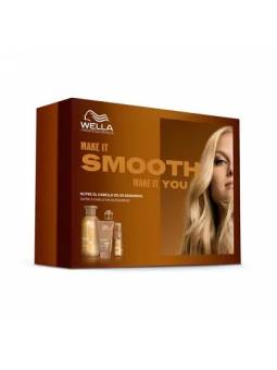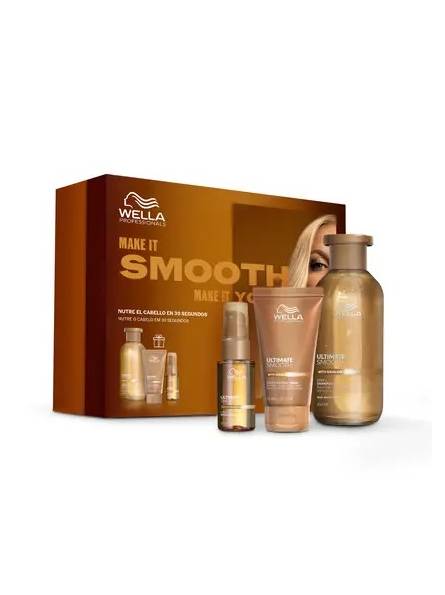 Cofre Wella Professionals ULTIMATE SMOOTH La rutina profesional para un cabello suave y sin encrespamiento. El Champú ULTIMATE SMOOTH está formulado con tecnología Metal Purifier para desintoxicar el cabello de metales. Con el uso de Miracle Oil Serum, nutre el cabello en 30 segundos, aportándole suavidad que dura hasta 3 días*. Mascarilla ULTIMATE SMOOTH con tecnología patentada y enriquecida con escualano y omega-9 para nutrir el cabello por dentro y por fuera. El Miracle Oil Serum nutre el cabello en 30 segundos, aportándole suavidad que dura hasta 3 días*. Enriquecido con escualano y omega-9, este sérum capilar ofrece protección contra los rayos UV y el calor (230°C/450°F), proporcionando 96 horas de control del encrespamiento y un brillo sedoso.