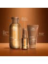 MODO DE EMPLEO: Aplicar el champú sobre el cabello mojado y emulsionar. Aclarar abundantemente con agua. Con el cabello limpio, aplicar la mascarilla y dejar actuar durante 5-10 minutos. Aclarar abundantemente. Utilizar el sérum antes, durante o después de la ducha - aplicar de 1 a 3 dosis sobre el cabello húmedo, de largos a puntas, o aplicar una pequeña cantidad sobre el cabello seco después del peinado.