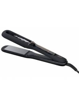 Esta innovadora herramienta de alisado cuenta con una función opcional de vapor frío que aplica una bruma refrescante sobre el cabello mientras se trabaja. El vapor frío reduce la necesidad de pasadas, lo que reduce el daño, aporta hidratación, brillo y reduce el encrespamiento. Sus 4 ajustes de temperatura la hacen adecuada para todo tipo de cabello. También se puede usar para crear rizos.