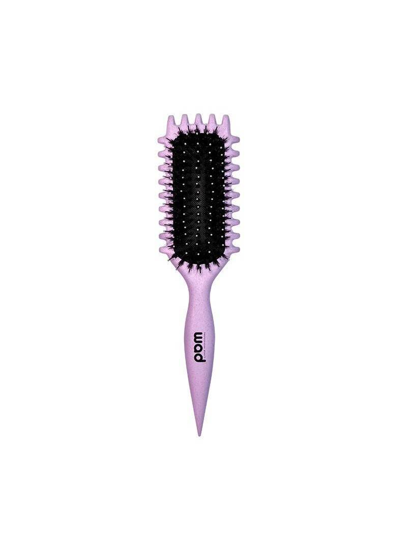 Aristas dentadas que ayudan a separar el cabello. Apto para todo tipo de cabello: seco, húmedo, liso, rizado, fino o grueso. Estructura con fibra de trigo y cerdas de nylon con pelo de jabalí.