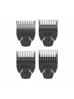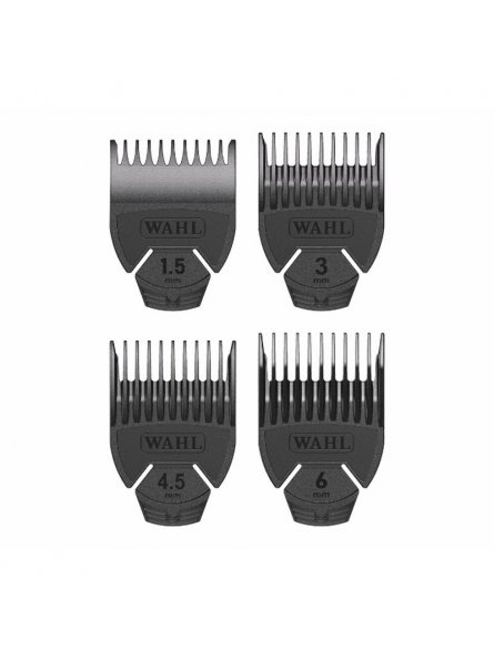 El Set de Peines Chromini de Wahl ofrece tamaños de 1,5, 3, 4,5 y 6 mm; diseñados para un ajuste preciso en contornos, cuidado de la barba y retoques delicados. Retoques exactos en contornos, barba y laterales.
