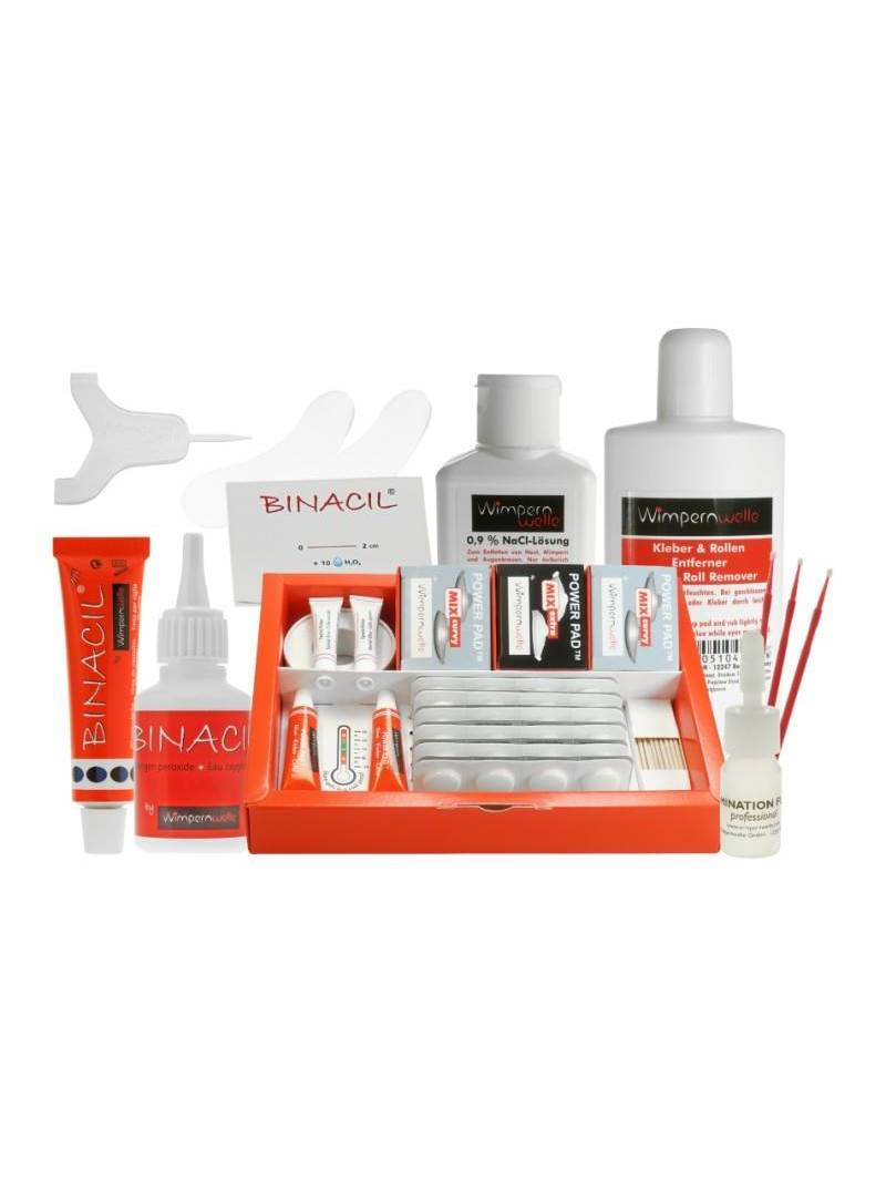 Contenido: 1 x Kit Lifting POWER PAD (n.° art. 10270), 1 x TRIO TOOL, 20 pares de Pads protectores autoadhesivos para la piel, 1 x Removedor pegamento & bigudíes, 1 x Solución fisiológica, 1 x BINACIL® Tinte de Pestañas & Cejas negro, 1 x BINACIL® Crema agua oxigenada, 1 x BINACIL® Bloc de mezcla pequeño, 1 x FLUIDO de LAMINACIÓN profesional con microbrush, 1 x póster, folletos para clientes "Lifting POWER PAD)